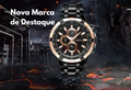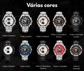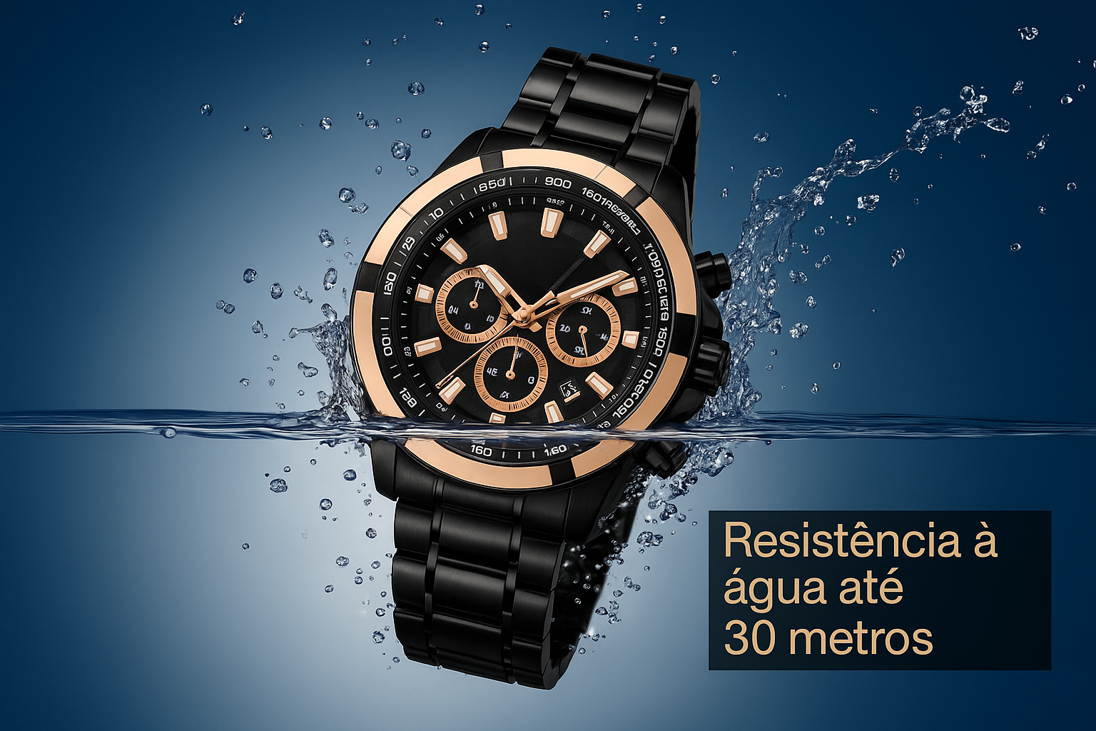Com caixa em liga metálica de alta qualidade e pulseira em aço inoxidável, este relógio transmite poder e elegância. O design minimalista com ponteiros luminosos garante um visual moderno, enquanto o vidro Hardlex oferece resistência a impactos e riscos.